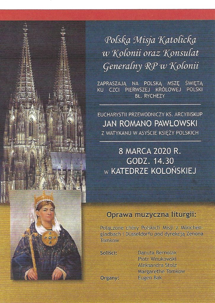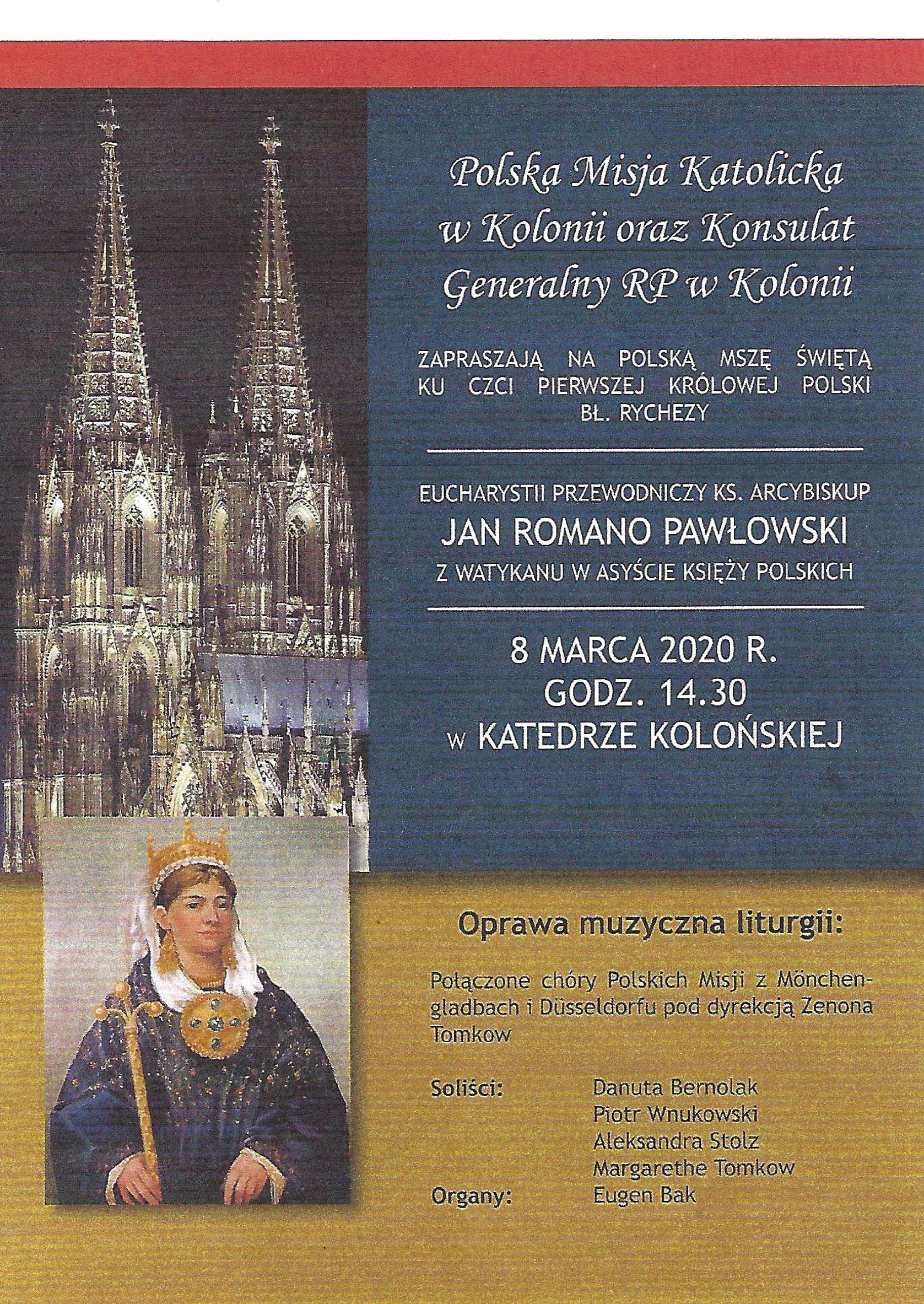 8 marca 2020 r., w rocznicę śmierci, w Katedrze Kolońskiej została odprawiona tradycyjna Msza Św. ku czci błogosławionej Rychezy Królowej Polski, która jest patronką naszej szkoły. Eucharystii przewodniczył ks. arcybiskup Jan Pawłowski z Watykanu.
