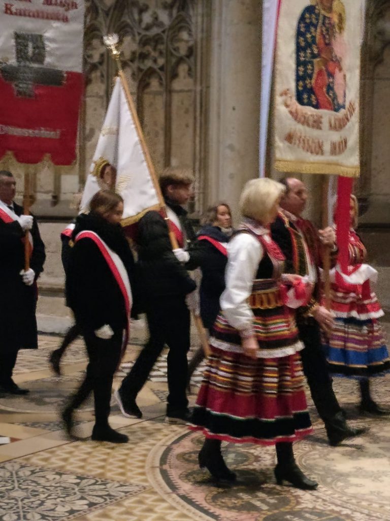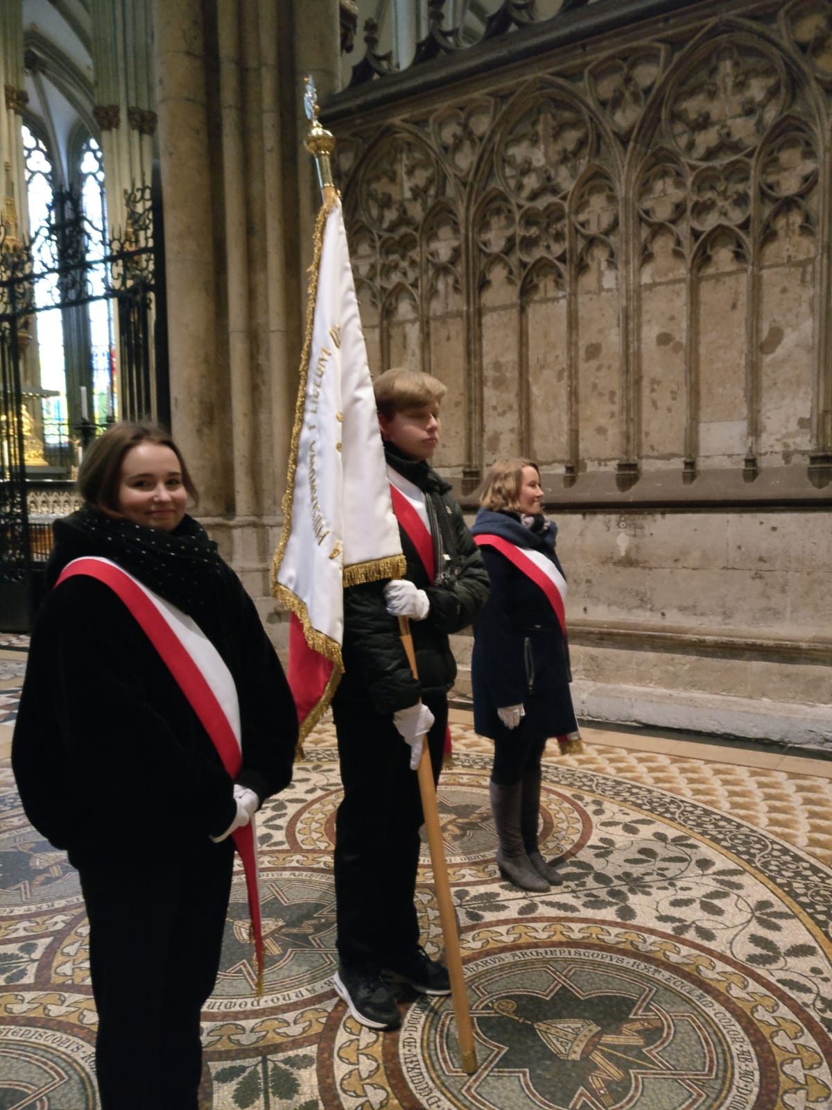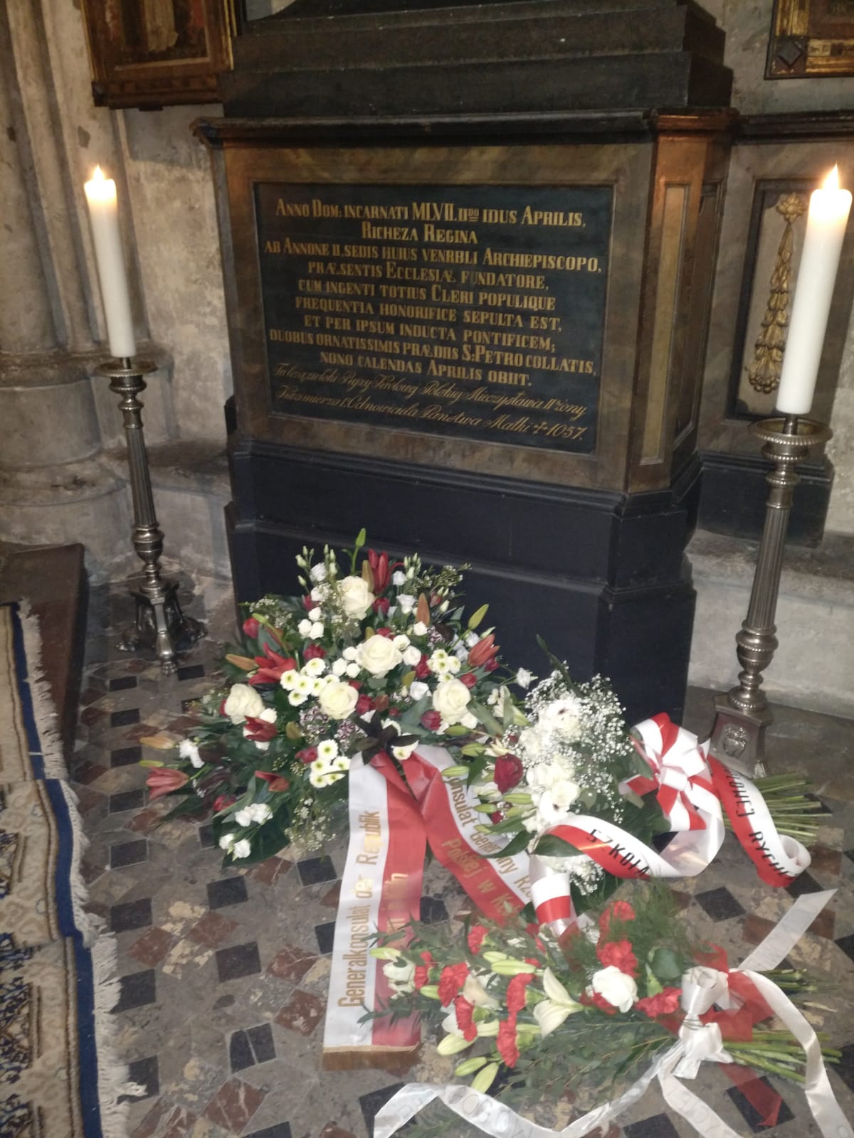 Po Mszy Św. na grobie Królowej Rychezy złożyliśmy wieńce z biało-czerwonych kwiatów.