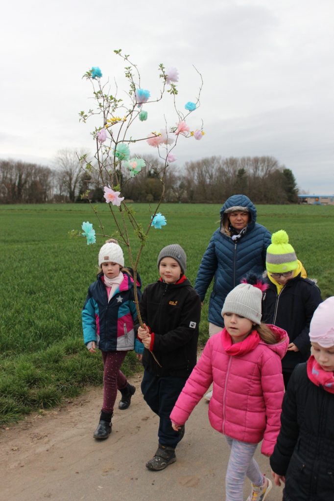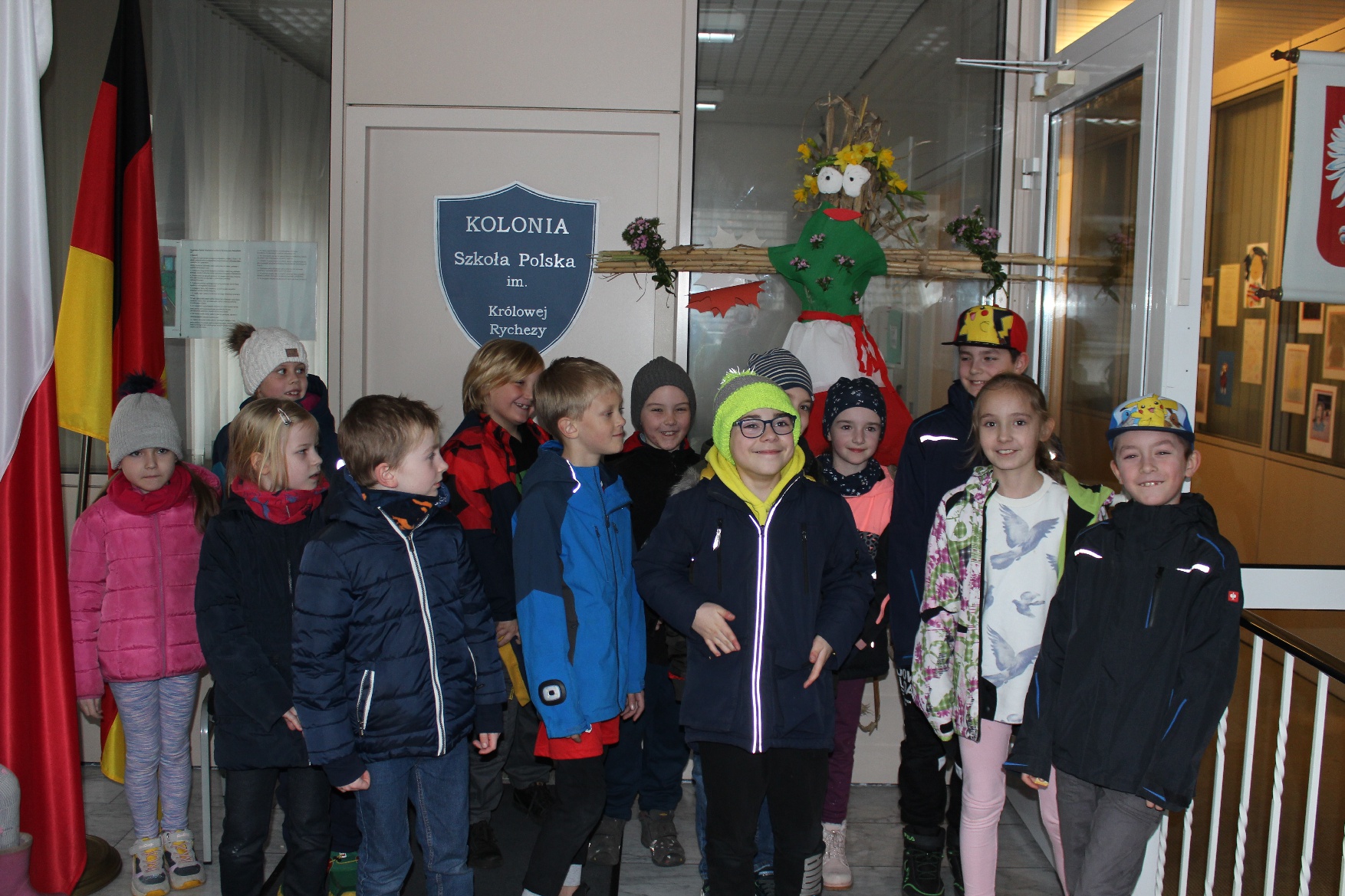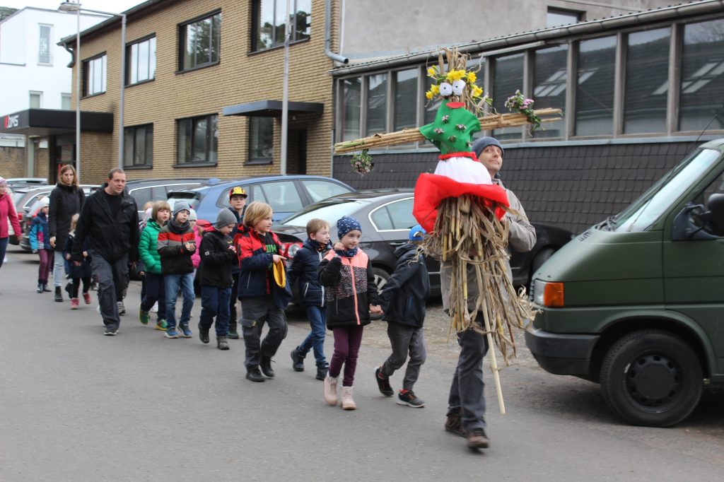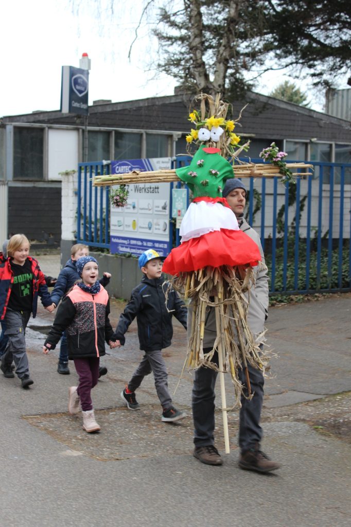 22 marca br. klasa 2 wraz z wychowawcą – panią Beatą Iwan i rodzicami wyruszyła ze szkoły z przygotowaną ze słomy i kolorowej bibuły kukłą nad Ren, by tam ją podpalić i utopić jako symbol przeganiania zimy.