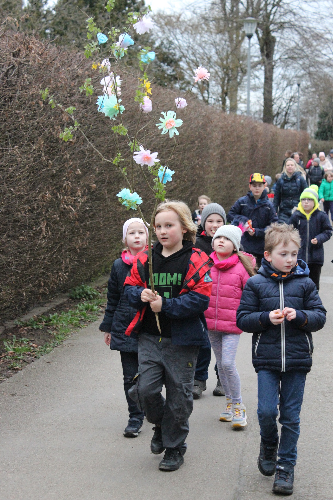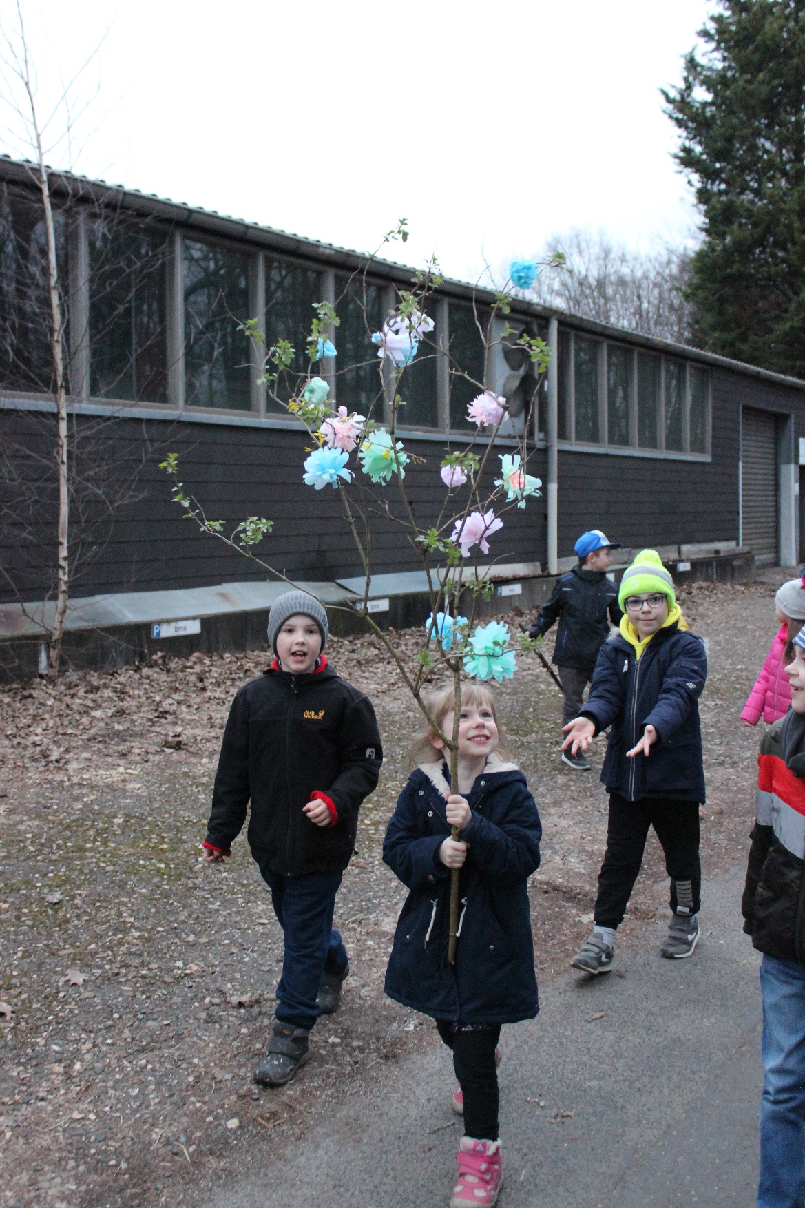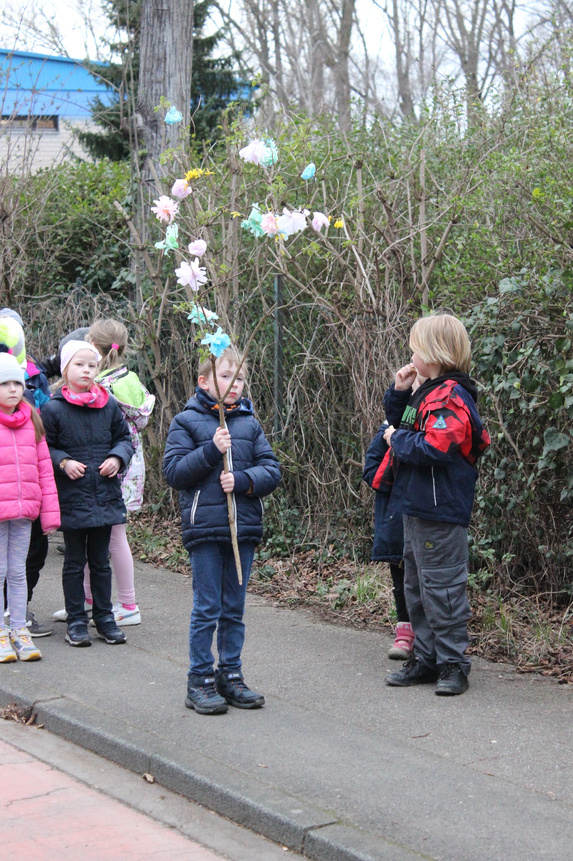 22 marca br. klasa 2 wraz z wychowawcą – panią Beatą Iwan i rodzicami wyruszyła ze szkoły z przygotowaną ze słomy i kolorowej bibuły kukłą nad Ren, by tam ją podpalić i utopić jako symbol przeganiania zimy.