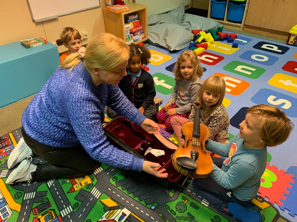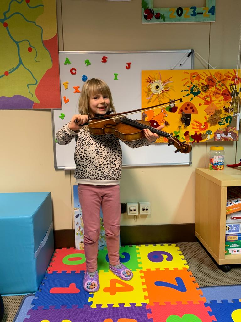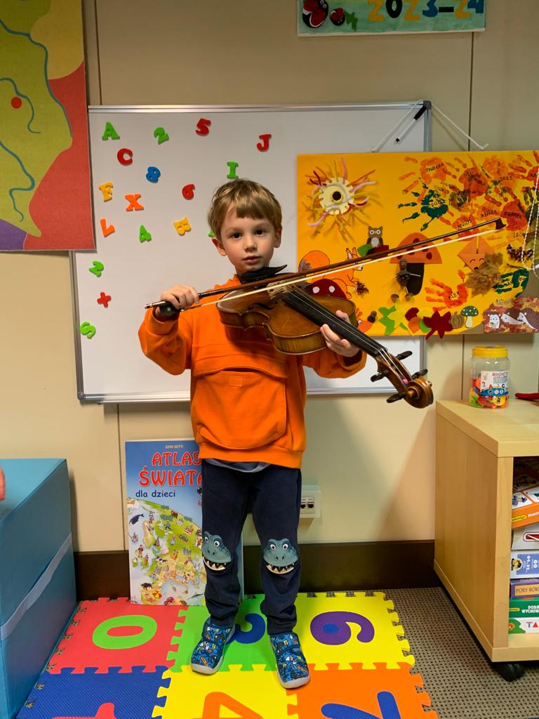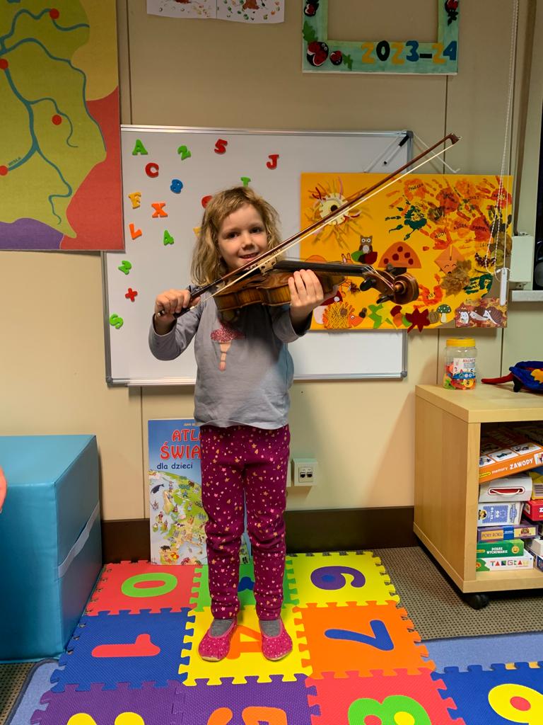 Co miesiąc będziemy poznawać instrumenty muzyczne. W listopadzie pojawiły się na zajęciach „Biedronek” skrzypce.