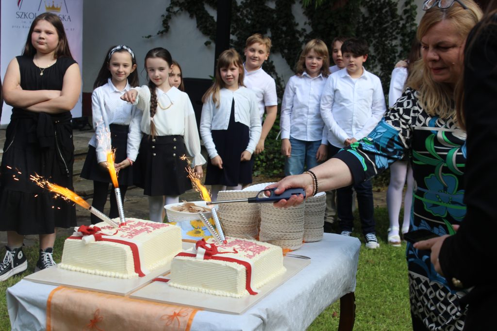 Wielką niespodzianką był … urodzinowy tort Szkoły, który wjechał na scenę z fanfarami, wywołując gromkie brawa!