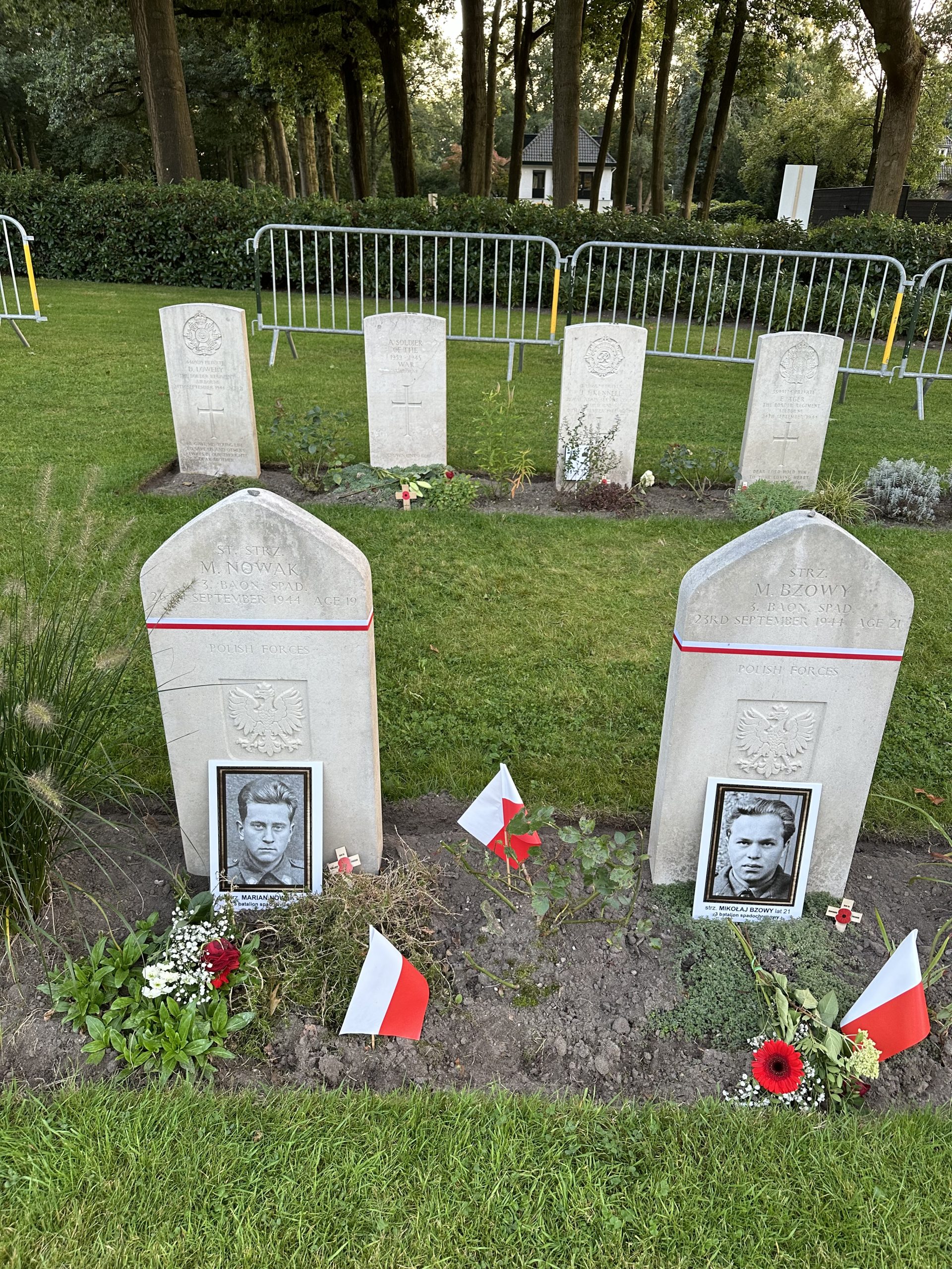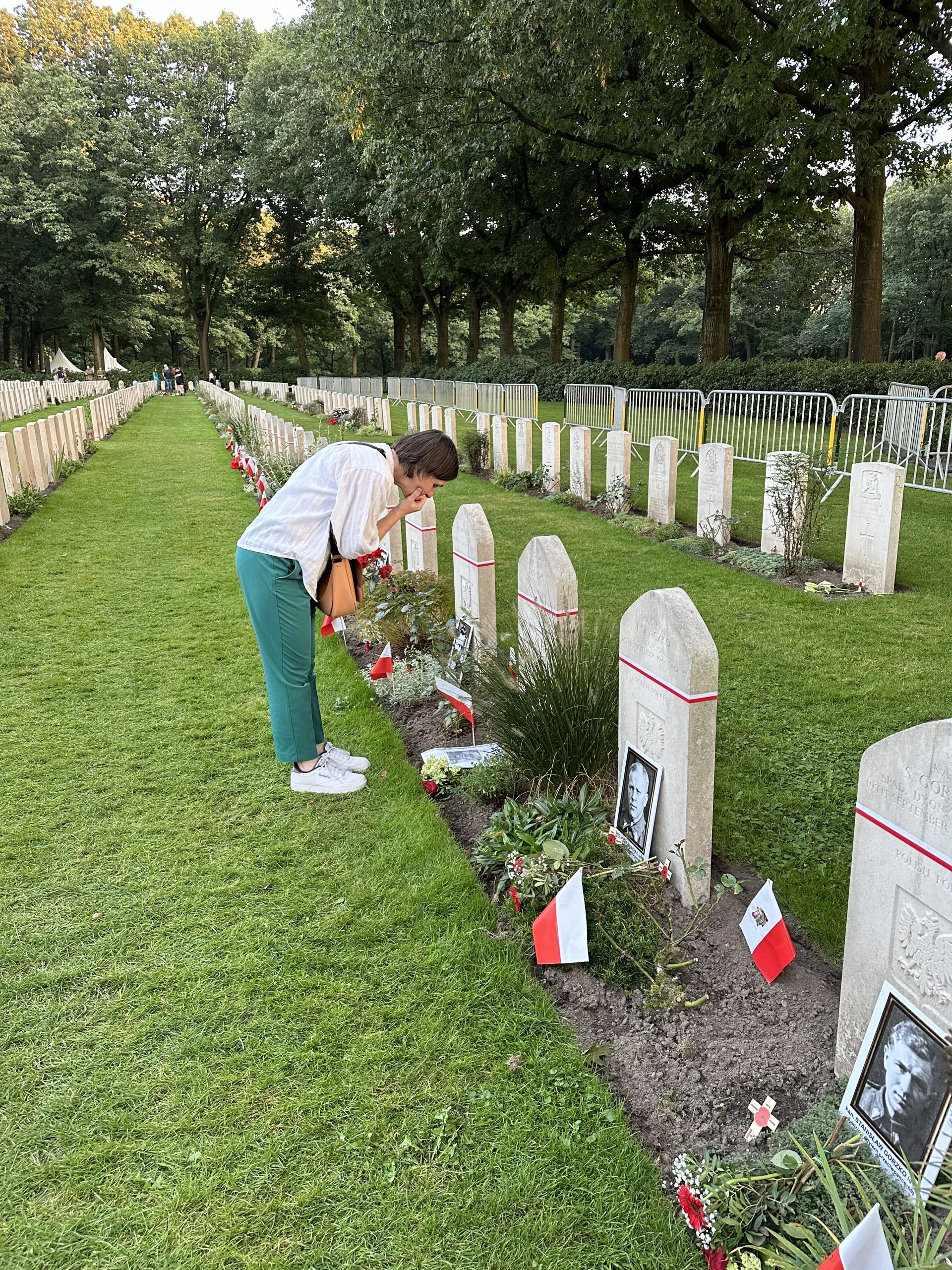 Z Driel udaliśmy się na cmentarz wojenny w Oosterbeek. Tam zapaliliśmy znicze na grobach polskich żołnierzy 1. Brygady Spadochronowej.