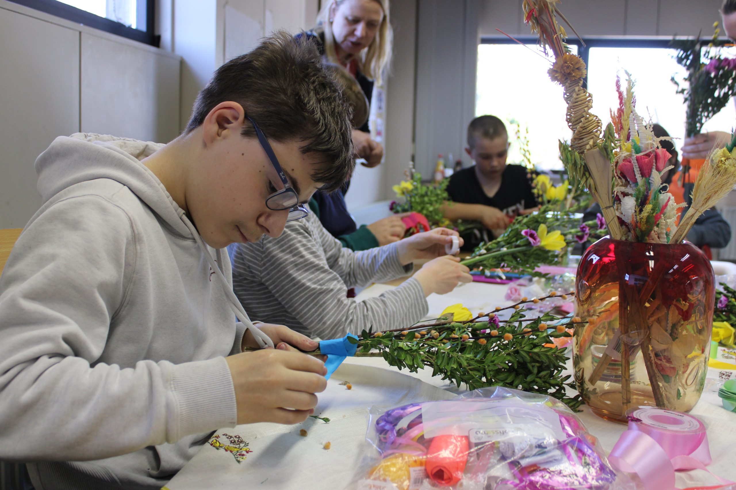 W Polskiej Szkole w Kolonii uczniowie z zaangażowaniem pielęgnują tradycje wielkanocne, które są ważnym elementem polskiego dziedzictwa kulturowego. W ramach przygotowań do świąt Wielkiej Nocy dzieci brały udział w warsztatach artystycznych, podczas których własnoręcznie wykonywały palmy wielkanocne – kolorowe i bogato zdobione gałązki symbolizujące radość oraz nadchodzącą wiosnę.