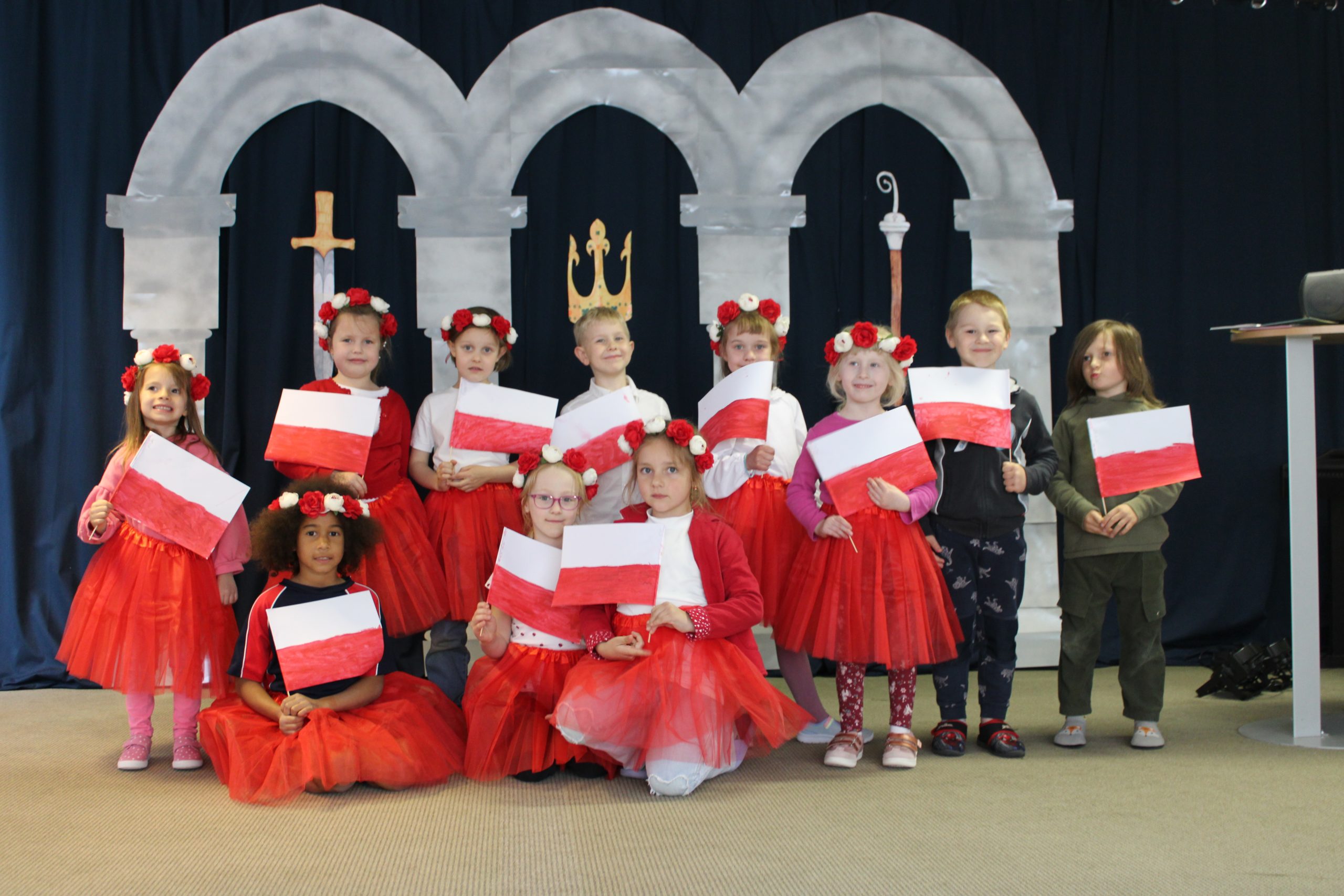 Dzieci z oddziału dziecięcego uczestniczyły w zajęciach tematycznych, podczas których dowiedziały się o znaczeniu Święta Uchwalenia Konstytucji 3 Maja oraz poznały polskie symbole narodowe. Nasi najmłodsi z dumą prezentowali własnoręcznie wykonane flagi i z radością śpiewali piosenki o miłości do Polski. Udział w wydarzeniach był doskonałą okazją do kształtowania postaw patriotycznych już od najmłodszych lat.