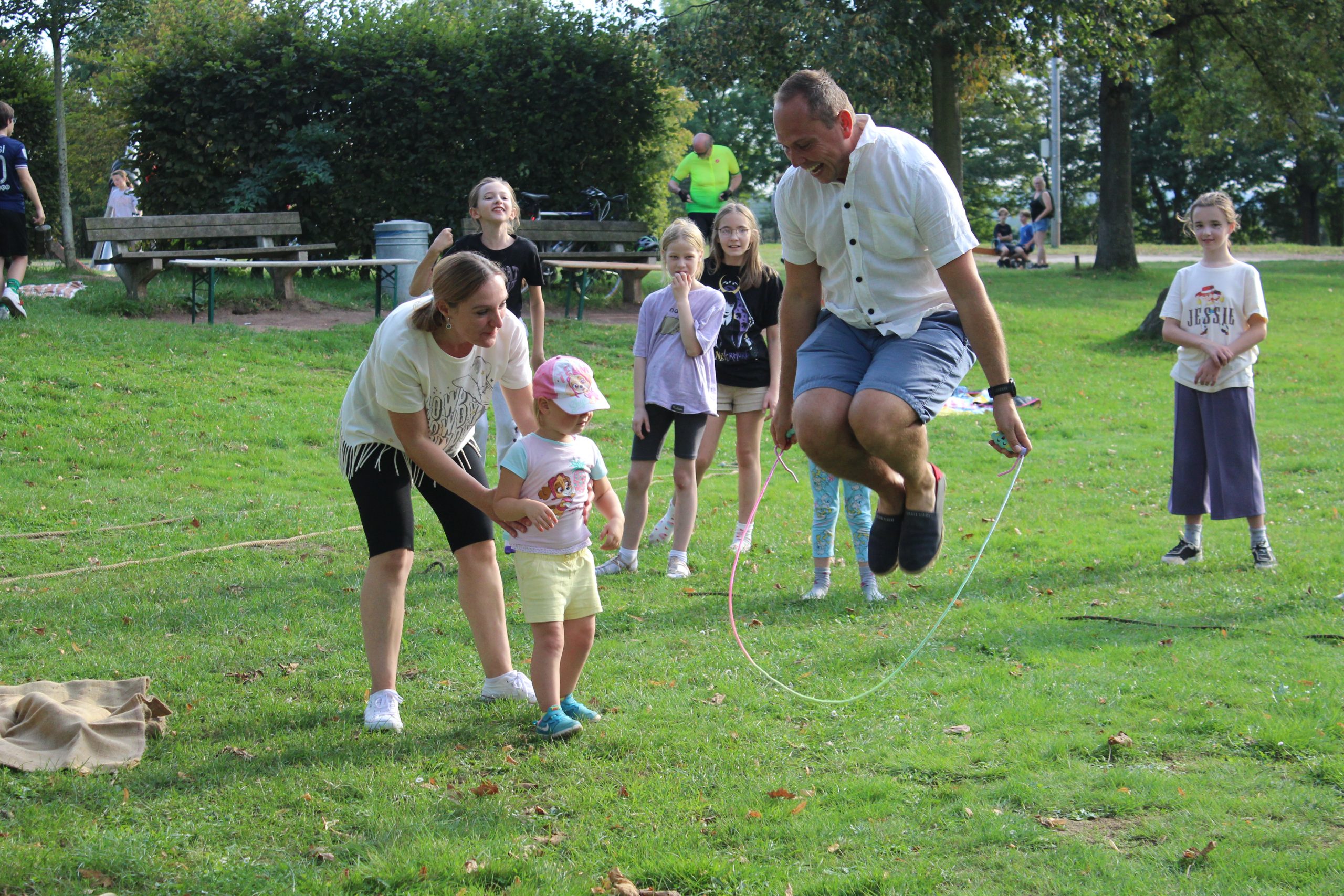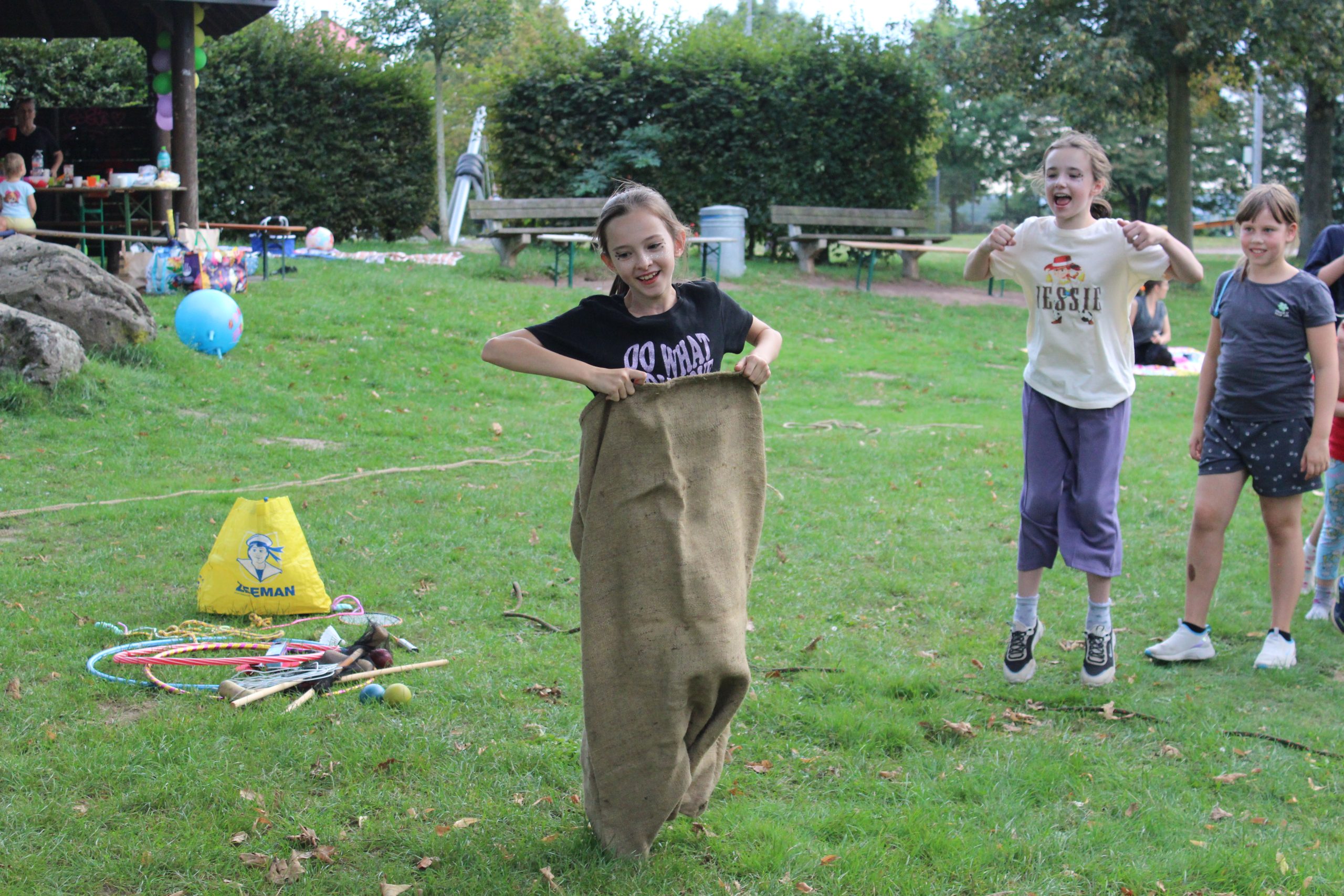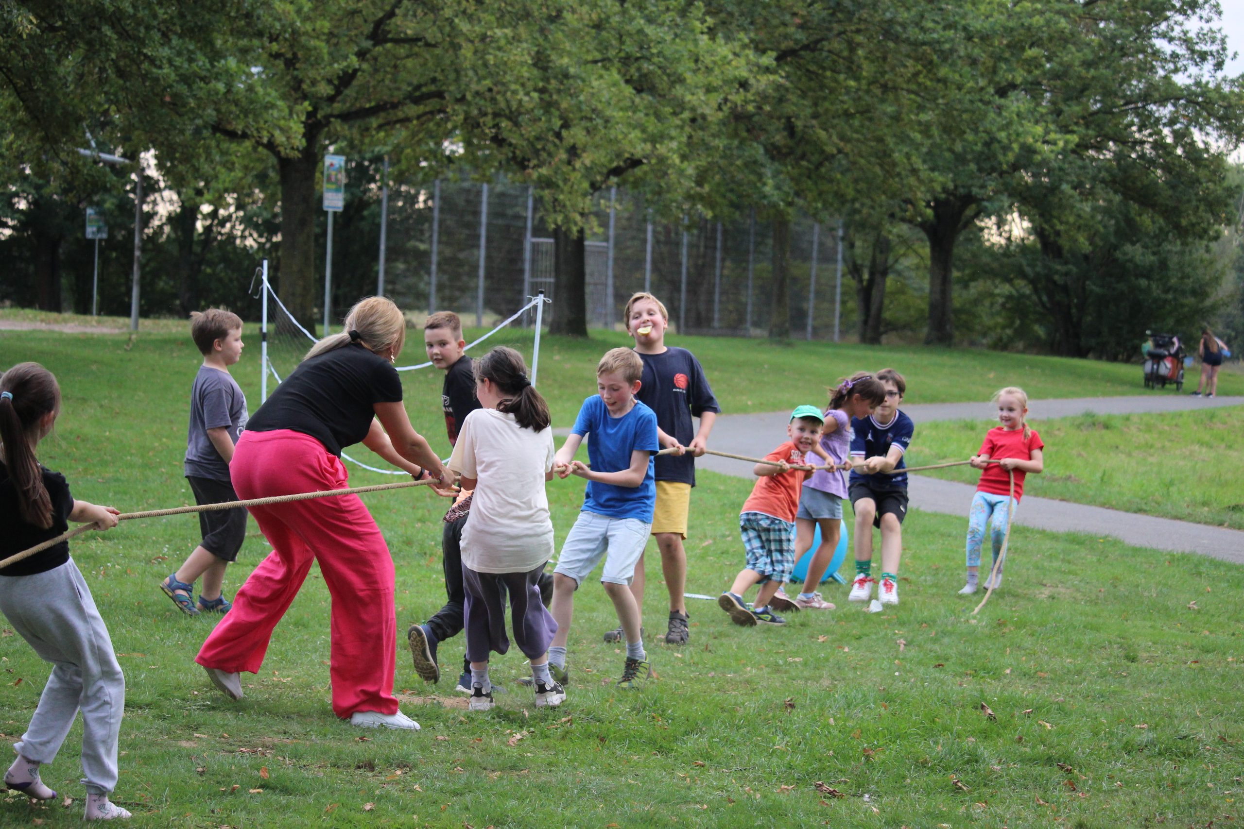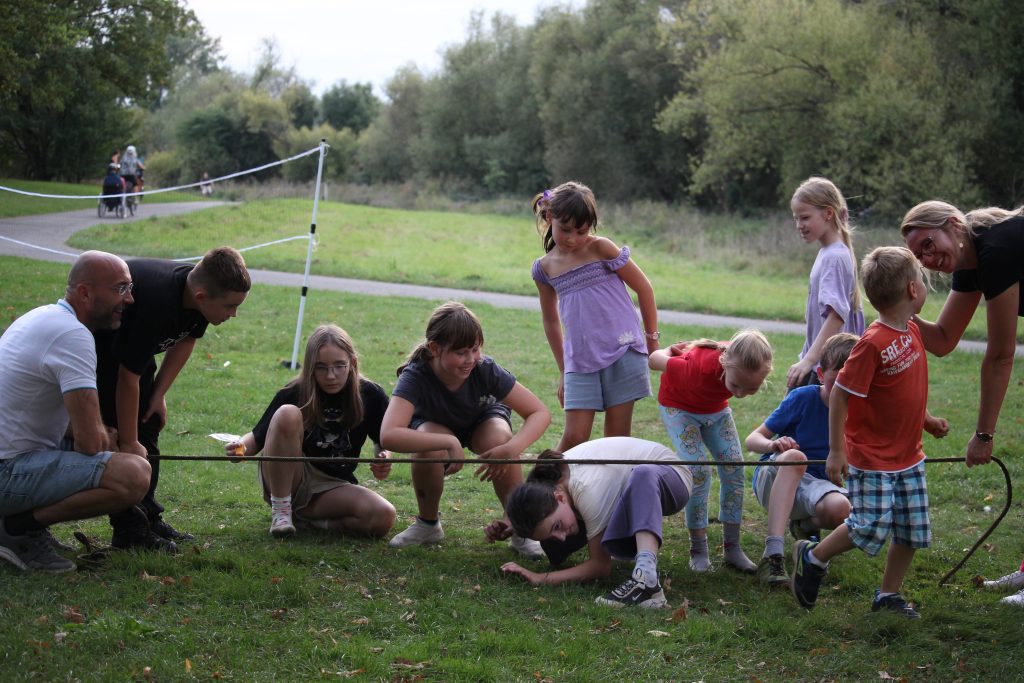 Rodzice przygotowali bogaty program konkursów i gier. Uczniowie mogli spróbować swoich sił m.in. w skakaniu w workach lnianych, przeciąganiu liny, noszeniu piłeczek pingpongowych na łyżeczce czy kręceniu hula-hoop. Na kocykach rozgrywały się zacięte partie w „Uno”, a niektórzy odważni weszli nawet do rzeki Sieg. Młodsze rodzeństwo naszych uczniów korzystało z atrakcji na pobliskim placu zabaw.