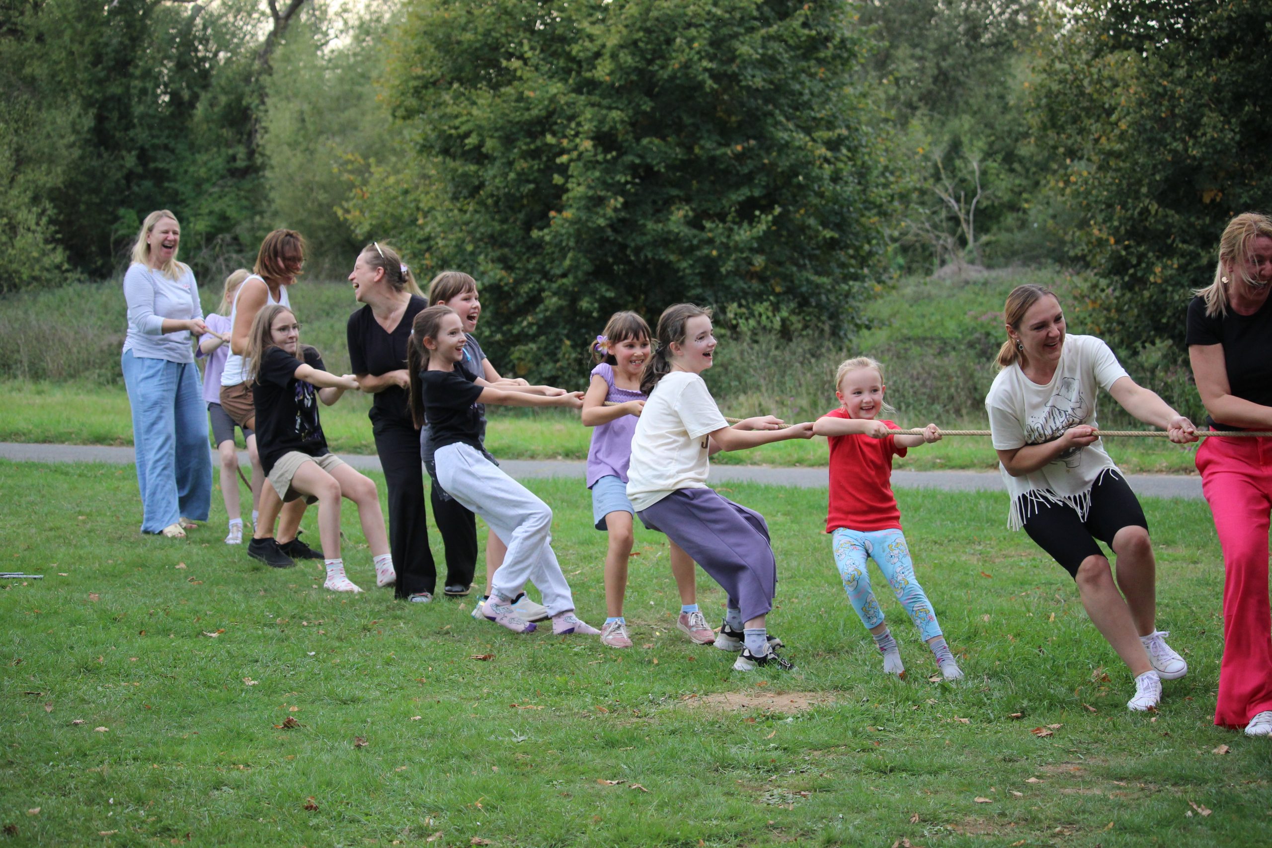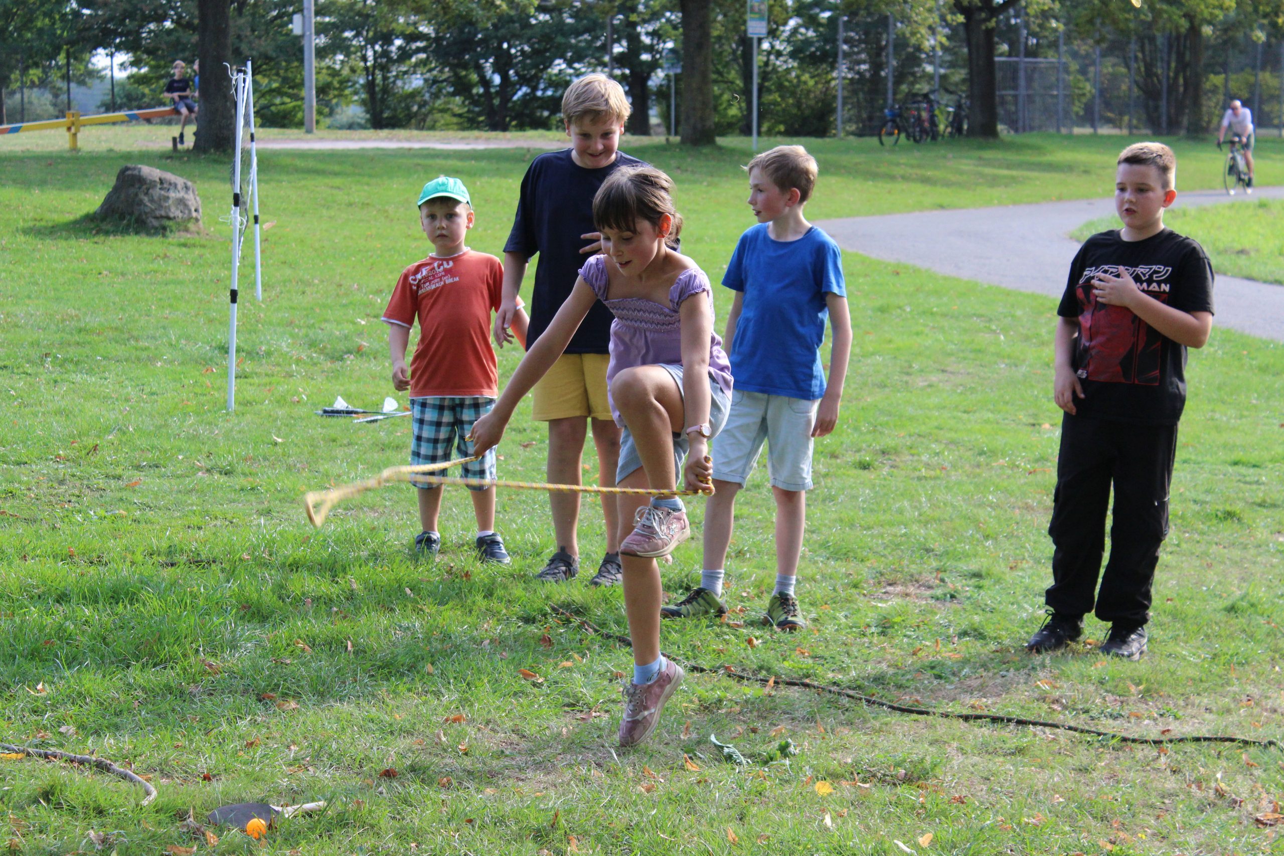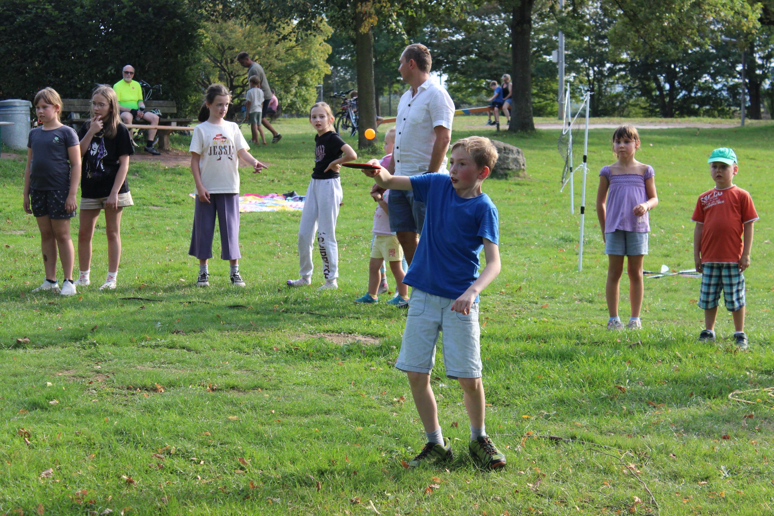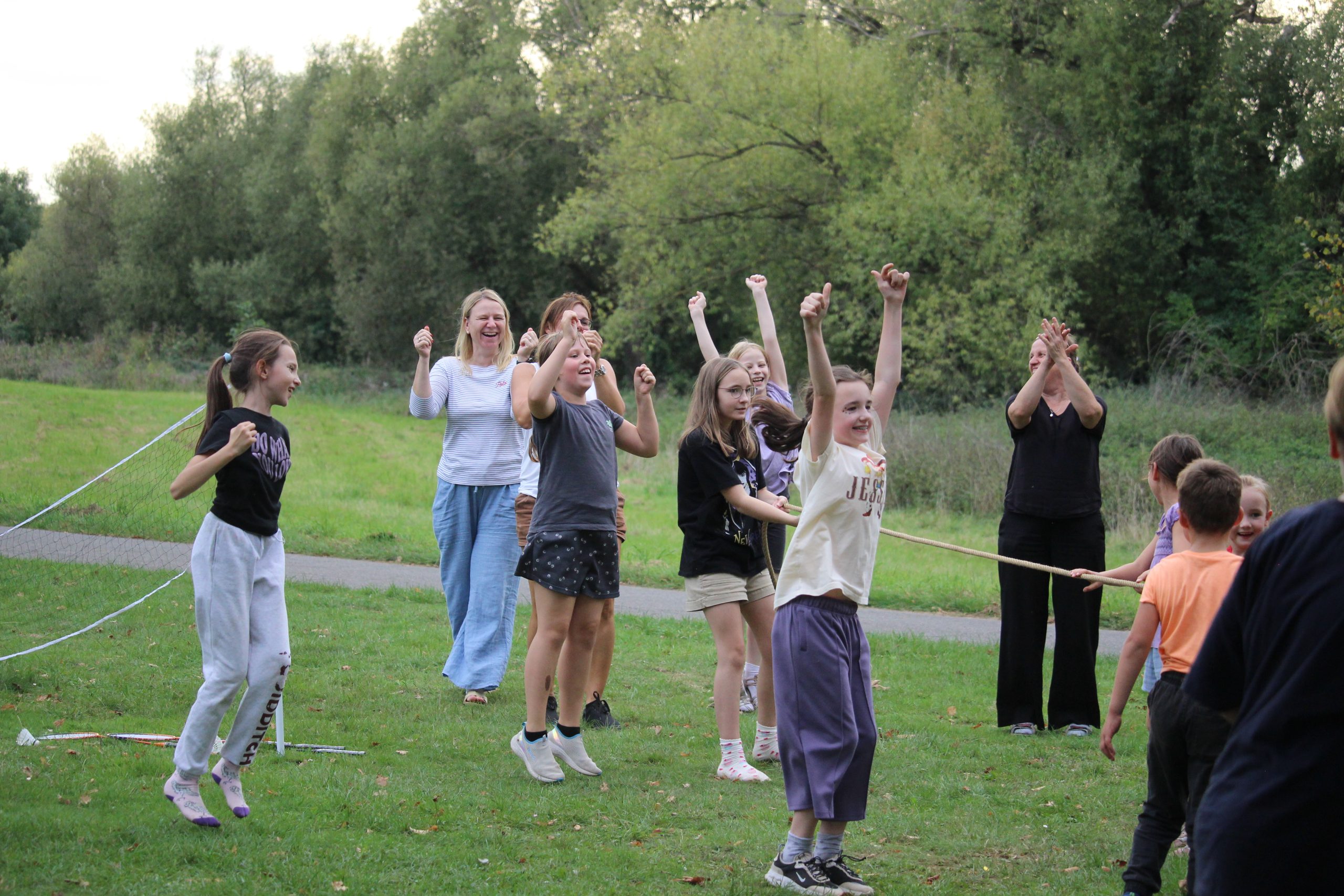 Rodzice przygotowali bogaty program konkursów i gier. Uczniowie mogli spróbować swoich sił m.in. w skakaniu w workach lnianych, przeciąganiu liny, noszeniu piłeczek pingpongowych na łyżeczce czy kręceniu hula-hoop. Na kocykach rozgrywały się zacięte partie w „Uno”, a niektórzy odważni weszli nawet do rzeki Sieg. Młodsze rodzeństwo naszych uczniów korzystało z atrakcji na pobliskim placu zabaw.