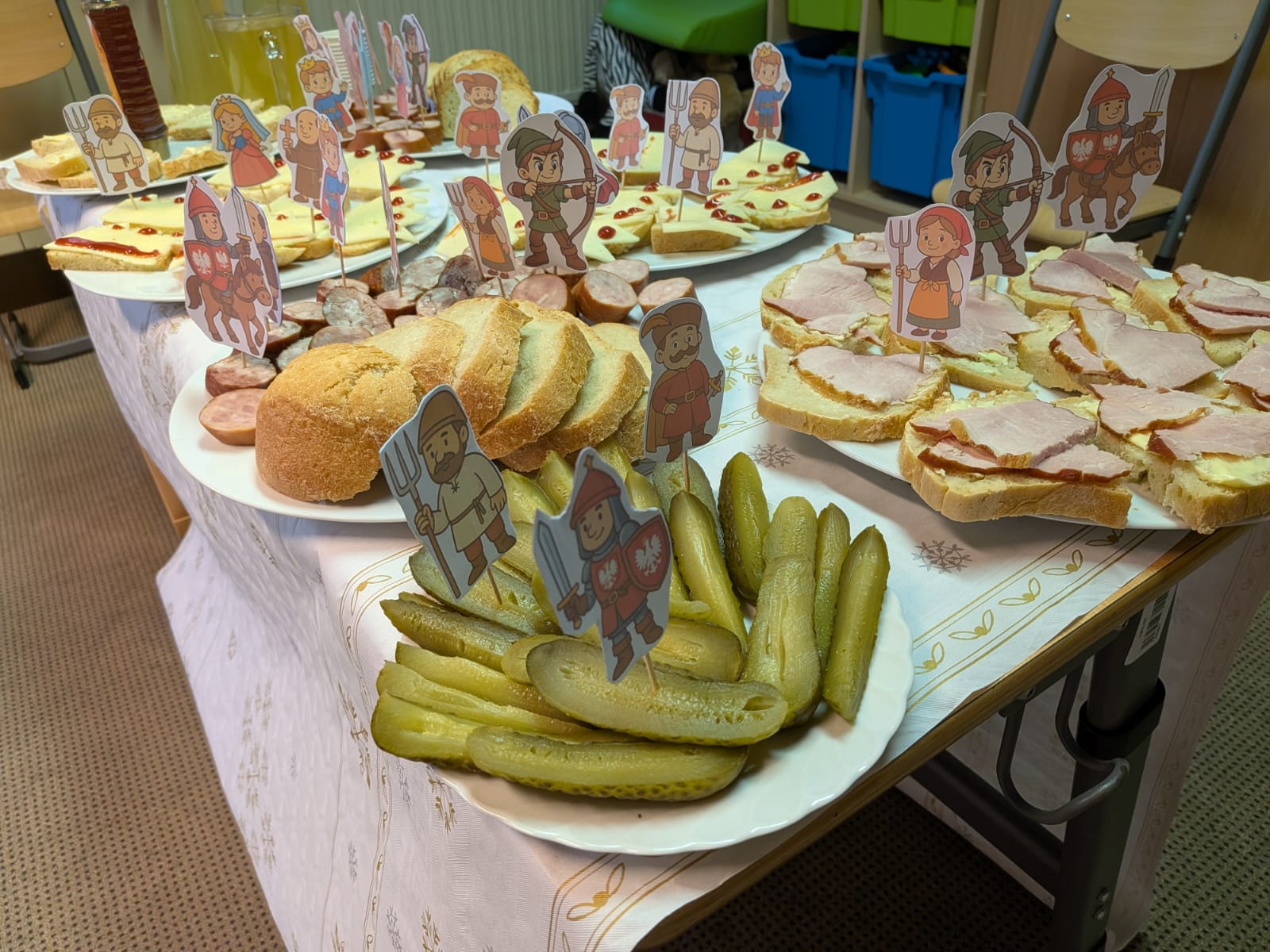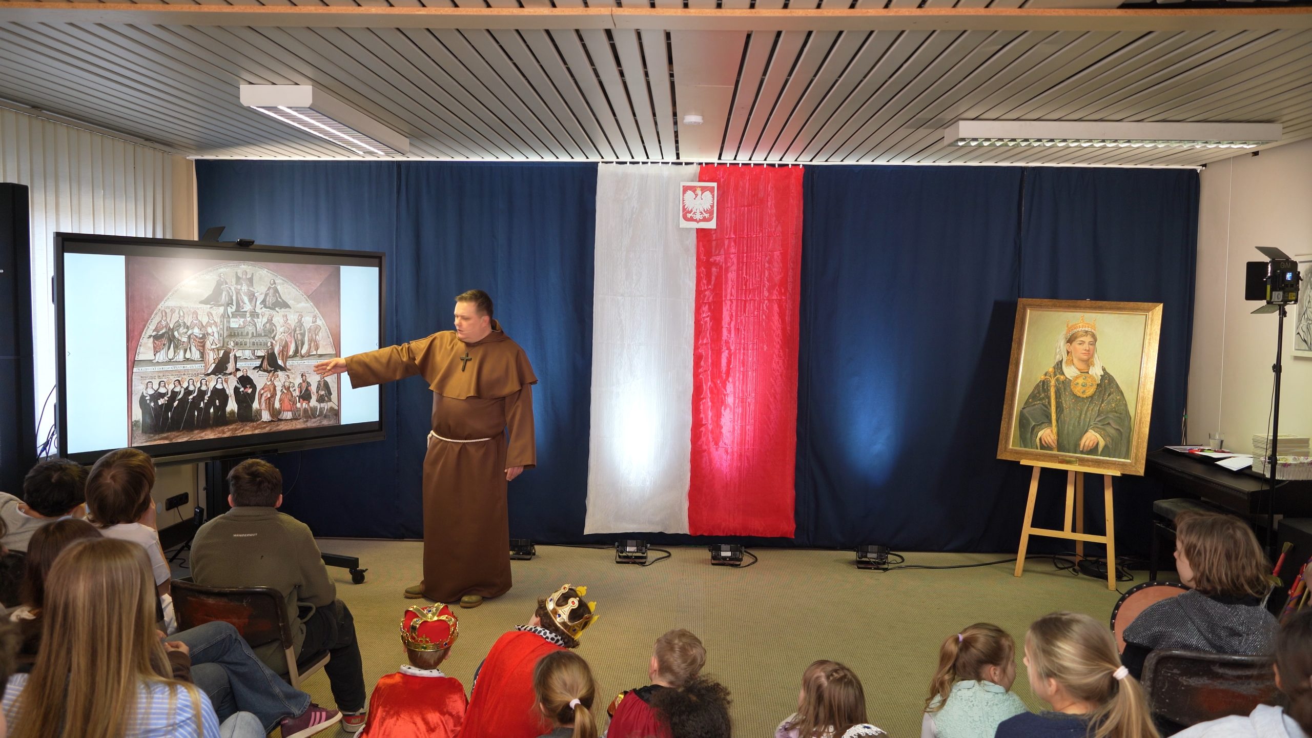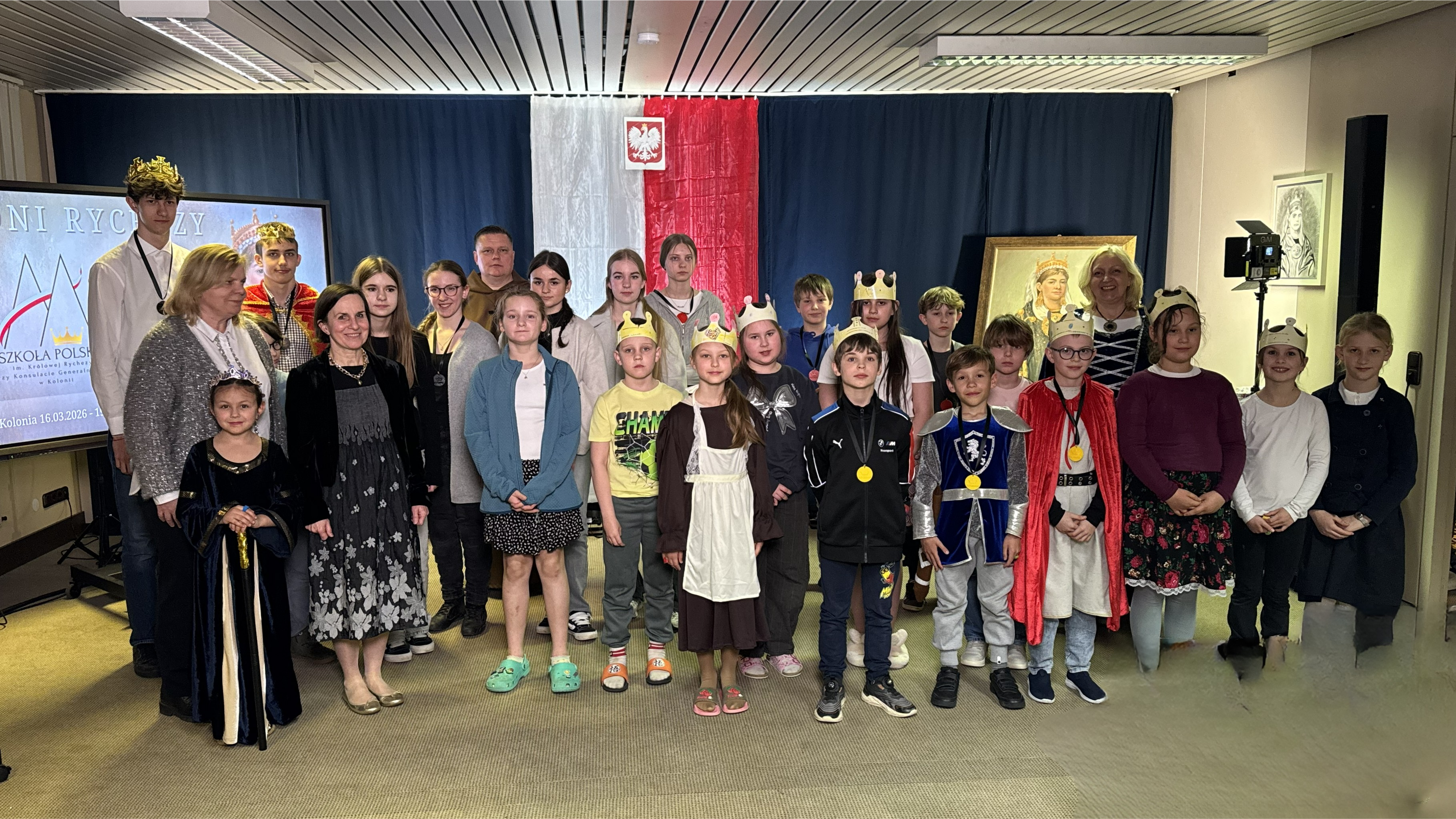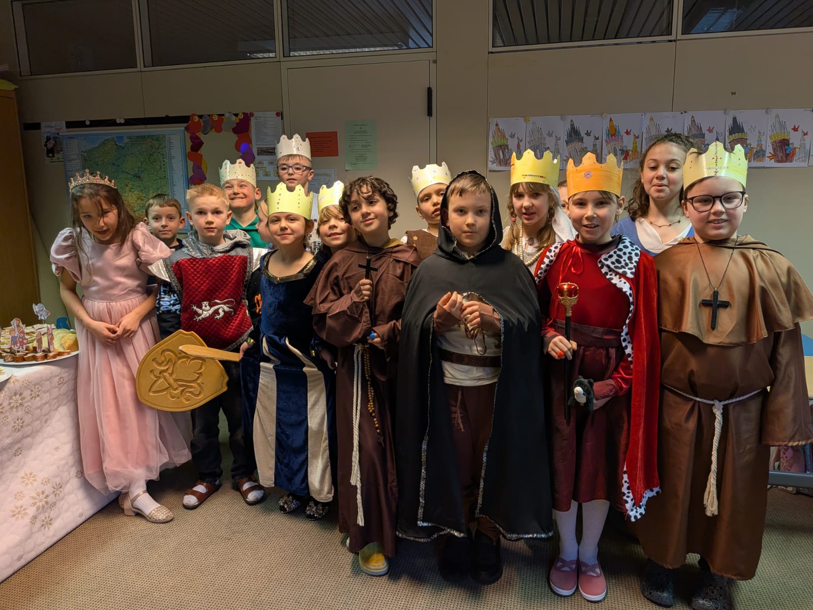 Obchody Dni Patronki miały również wyjątkowy, barwny charakter – uczniowie przyszli do szkoły przebrani w stroje nawiązujące do epoki średniowiecza, co pozwoliło jeszcze lepiej poczuć klimat sprzed tysiąca lat. Dodatkowo własnoręcznie wykonywali i ozdobiali korony, wykazując się przy tym dużą kreatywnością i zaangażowaniem. Niezwykłą atmosferę dopełniły także smakołyki przygotowane przez rodziców, których wygląd i forma inspirowane były dawnymi czasami.