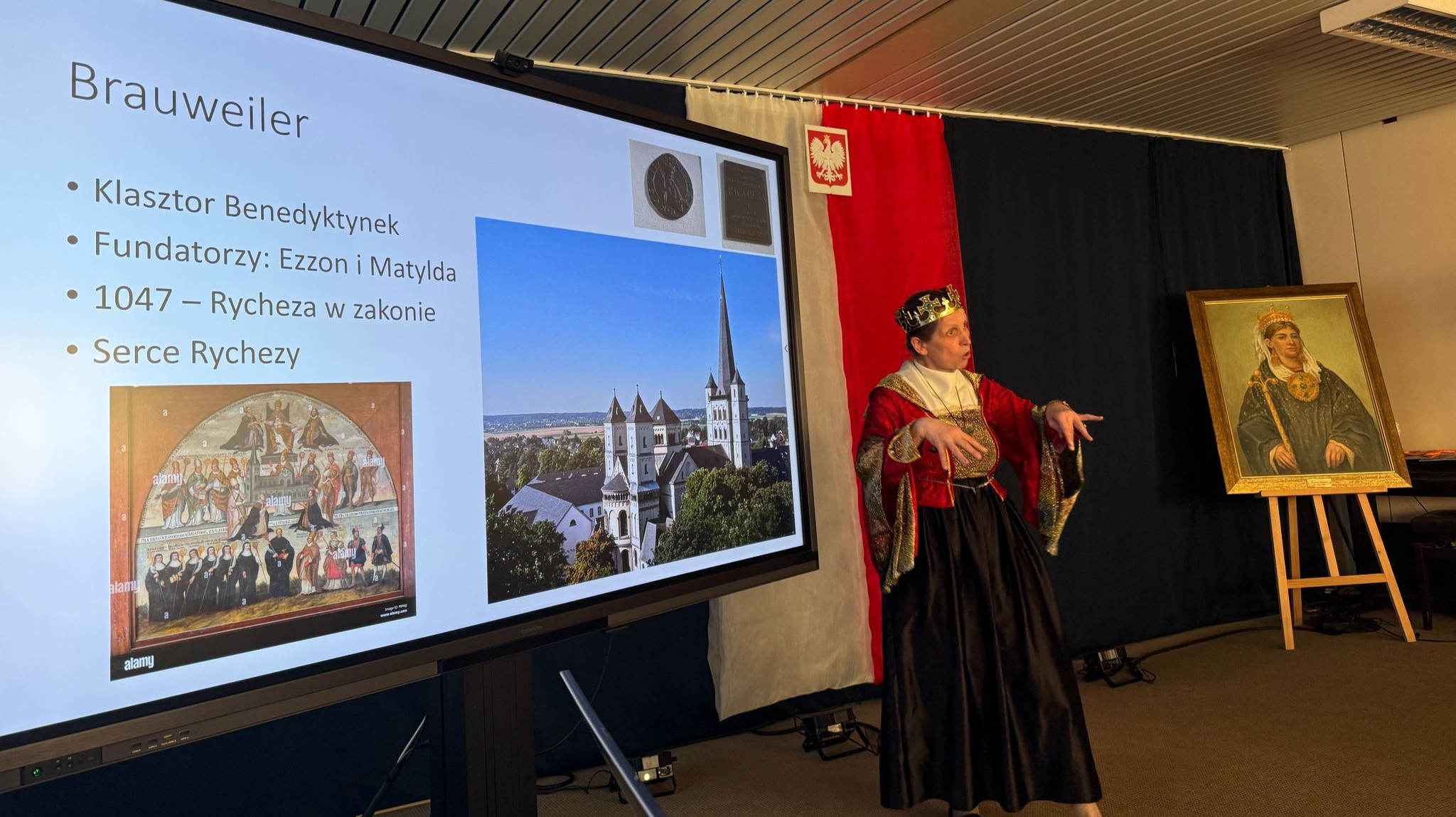 Pani Dyrektor Beata Iwan witając szkolną społeczność zacytowała oficjalny dokument o nadaniu naszej szkole imienia Królowej Rychezy z roku 1998.