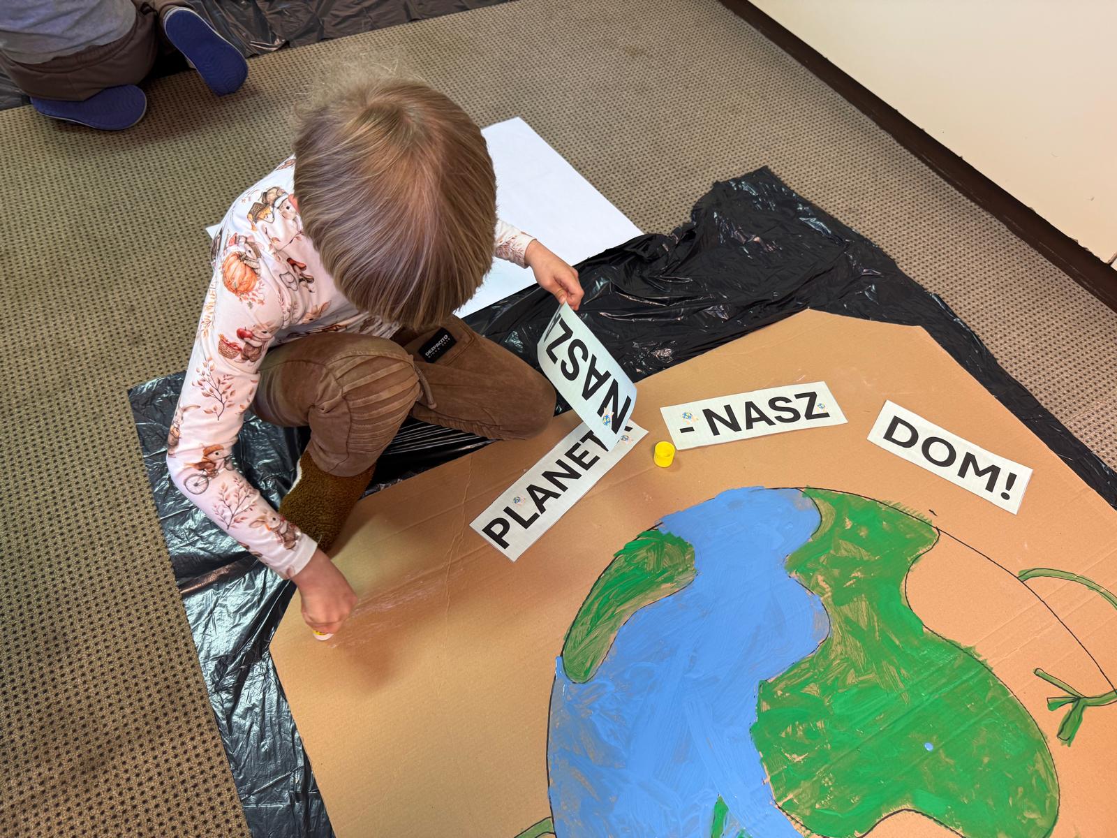 Podczas zajęć dzieci dowiedziały się jak dbać o naszą planetę i dlaczego każda porzucona plastikowa butelka ma znaczenie. Dzieci opanowały zasady segregacji odpadów, bezbłędnie dopasowując kolory koszy do odpowiednich śmieci.
