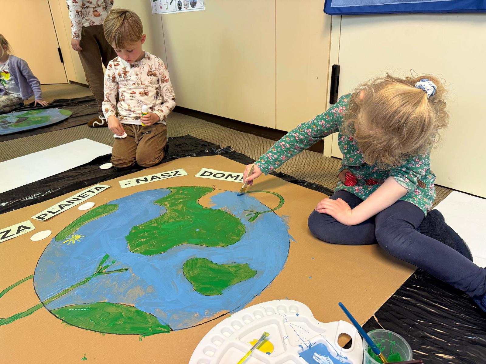Zwieńczeniem dnia była praca w grupach- nasza sala zamieniła się w pracownię projektową. Zamiast plastiku, w ręce małych twórców trafiły dary natury. Z tych skarbów dzieci stworzyły barwne plansze pełne naturalnych tekstur. Kreatywność nie miała granic. Dzieła te pokazały, że dzieci są prawdziwymi Strażnikami Planety.